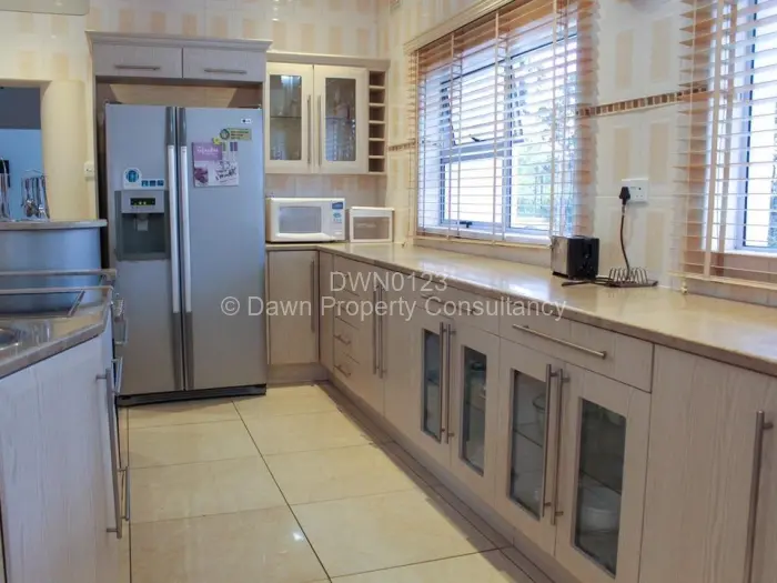 UN compliant with electric fence will be ready for a new tenant 01/3/2026 (1 March 2026). With water 24/7 365 days a year and a 20kVA solar. This Regal residency is ideal for Diplomatic protocol.