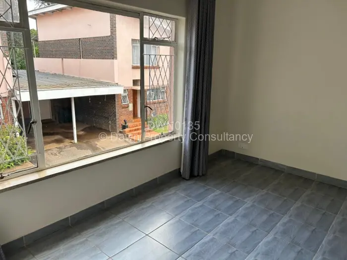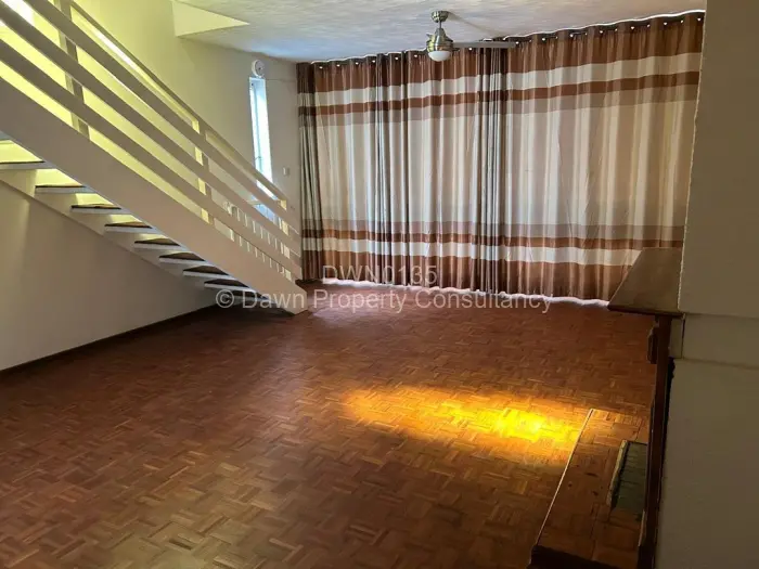 Charming 2-bedroom, 1-bath flat for rent in sought-after Avondale (Harare North). Set in a quiet, tree-lined complex with single garages and paved driveways, this duplex-style apartment greets you with a generous open-plan living area featuring polished parquet floors, a cosy fireplace, large secured windows with curtains and a ceiling fan perfect for entertaining or relaxed family living. A modern kitchen has crisp white cabinetry, marble-look tiled walls and dark stone countertops for a fresh, practical finish. Upstairs the two bedrooms are bright and well-proportioned, served by a neat bathroom. Secure grounds, well-tended communal lawns and off-street parking add convenience. Important: the property is supported by a borehole, giving reliable water supply. Ideal for professionals or a small family seeking comfort and security in central Avondale contact us to arrange a viewing.