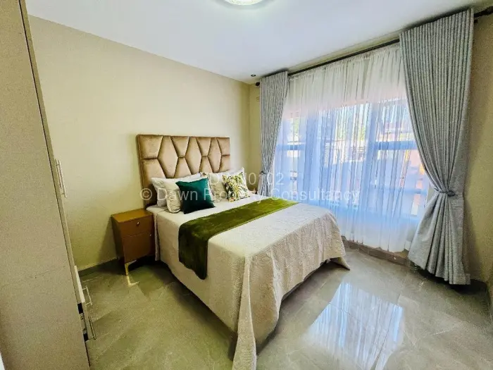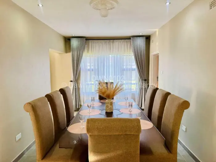 Discover your perfect sanctuary in Mt Pleasant! This exquisite new 6-bedroom house seamlessly combines style, functionality, and luxury. It boasts a main bedroom with an ensuite and walk-in closet for ultimate comfort, while two additional bedrooms share an ensuite, and another full bathroom caters to family needs. Each room features built-in cupboards, and the fully equipped kitchen comes with modern appliances. Enjoy a cozy lounge, two dining areas, a fireplace, and a solar-powered borehole with a 5000L tank, alongside two solar geysers and a 5kW solar system for sustainable living. The property also includes a gazebo for entertaining, a carport, a spacious driveway, and a self-contained 3-bedroom cottage, all within a secure, walled, and gated environment on a generous 2182sqm lot. Developer Cession and Ready for Title Deeds, Priced at $390K and highly negotiable!
