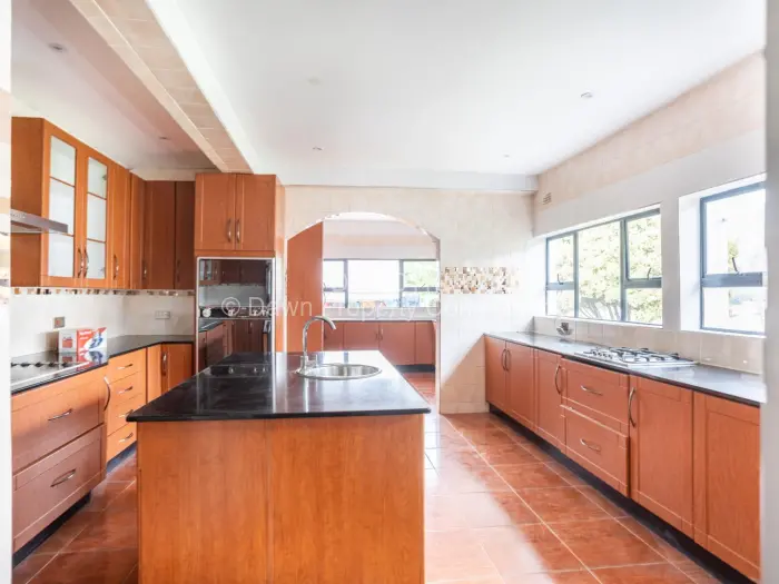 Set on a generous 2073sqm, the outdoor area includes a borehole, providing a sustainable water source, alongside 2 garages that cater to your parking and storage needs. The heart of the home includes a charming dining room, where family memories can be shared over meals.