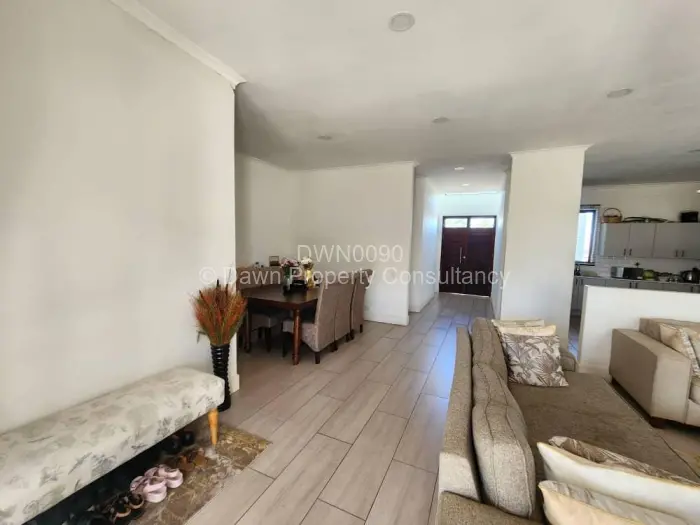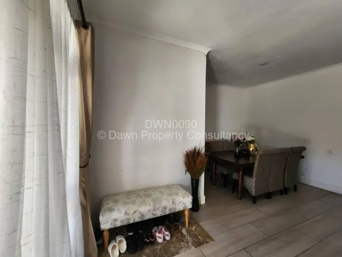 Explore this captivating townhouse in Arlington, Harare, offering a harmonious blend of comfort and modern living. As you enter, you'll be greeted by a bright and airy entrance hallway, accentuated by a large arched window and elegant double wooden doors. The light-colored tiled flooring flows seamlessly through the space, creating a welcoming atmosphere.